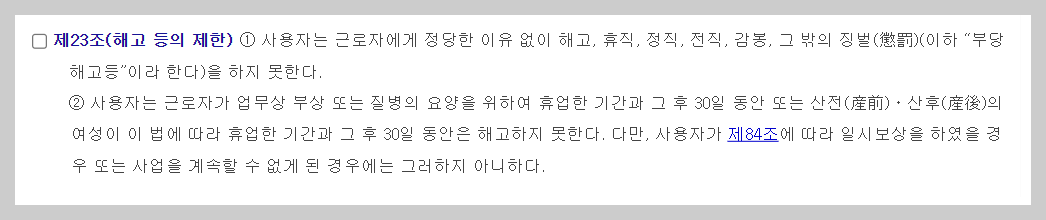#참고 : 근로기준법 제 23조 해고 등의 제한 (※ 클릭시 해당 조문으로 이동합니다.)