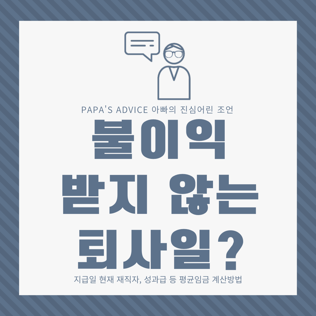 회사를 잘 다니다가, 부득이한 사정으로 퇴사를 할 경우, 퇴사일에 따라 퇴직금 및 퇴직월의 급여에 이익을 볼 수도 불이익을 볼 수 있습니다. 오늘은 며칠에 퇴사해야 통상적으로 유리한지, 어떤 부분을 Check 해야 하는지 알아보도록 합시다.