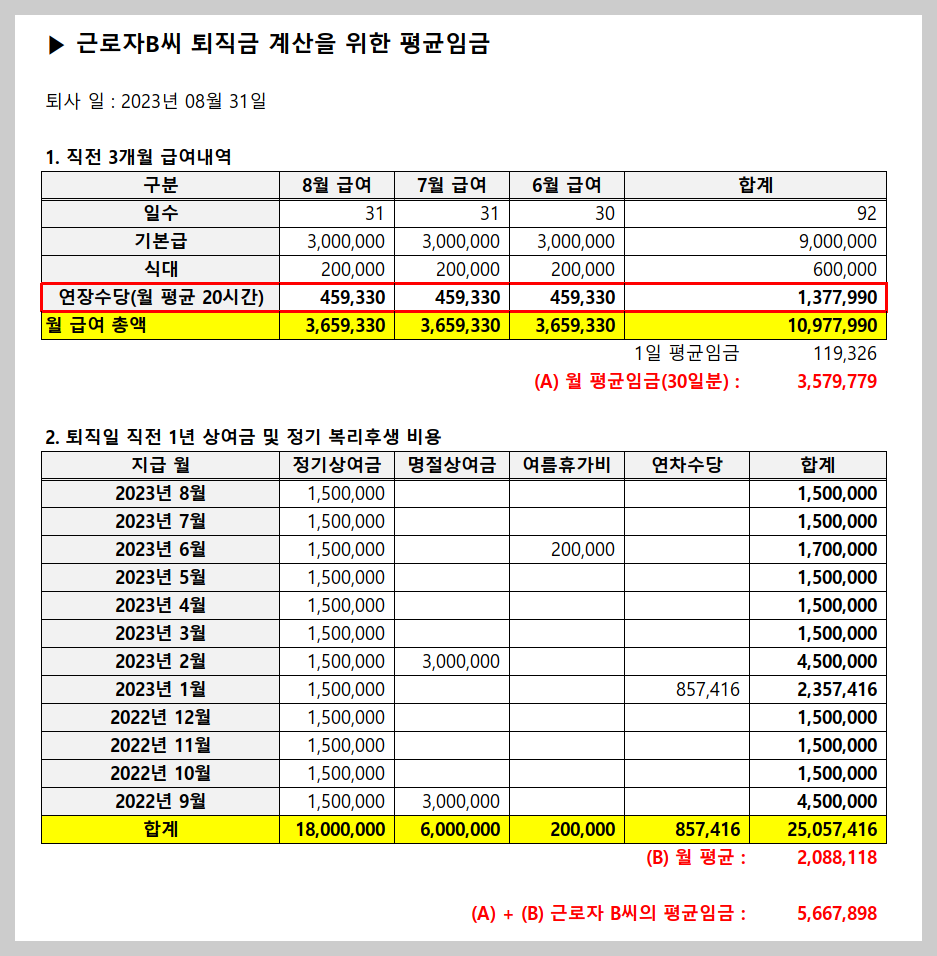 근로자 B 씨의 사례로 평균임금을 계산해 보도록 하겠습니다.