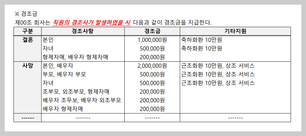 #사례 : 경조금 지급규정