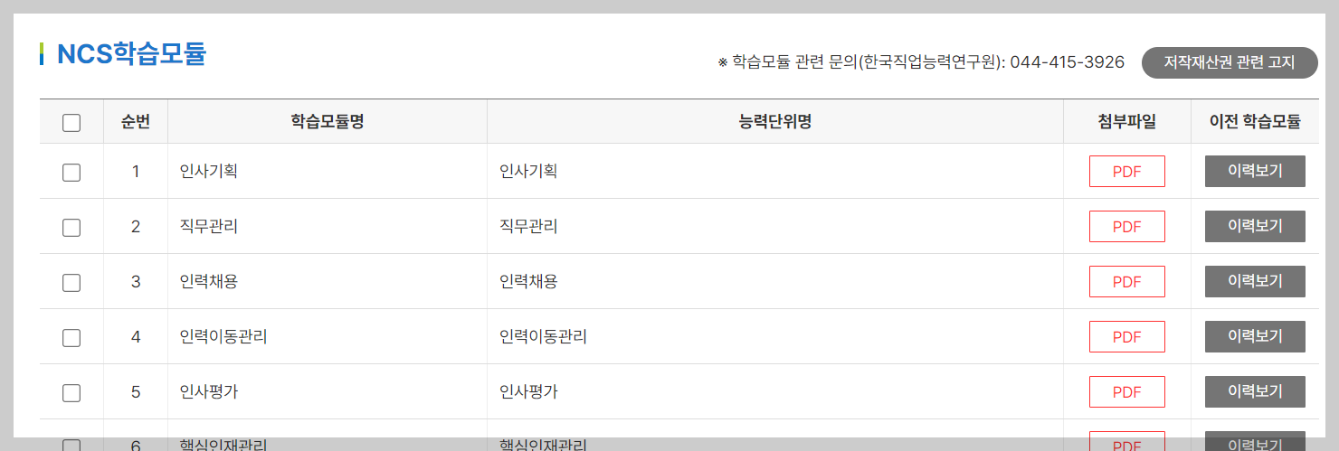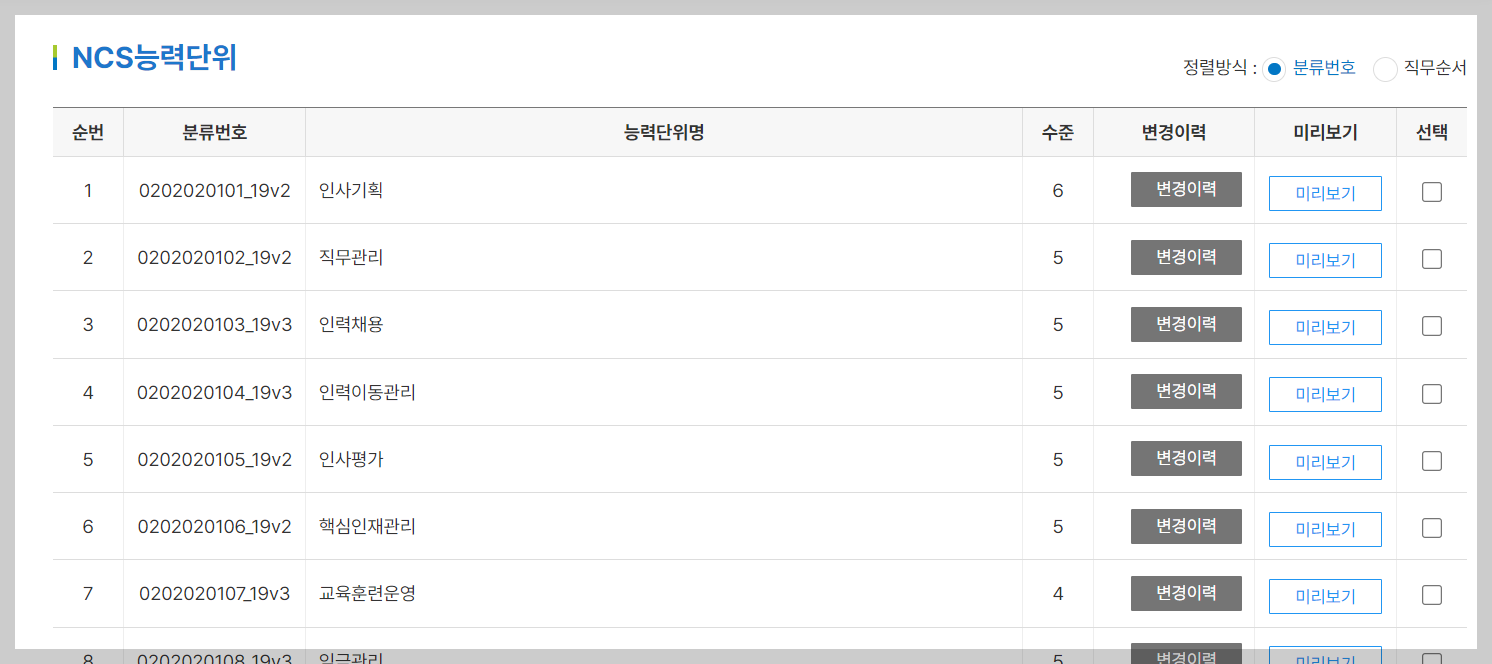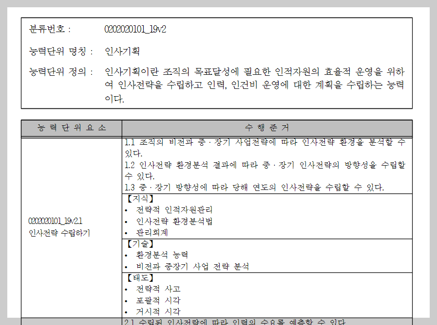 그리고 아래로 조금씩 내리다보면, 인사 직무를 수행하기 위해 필요한 능력의 단위와 그 능력에 대한 상세한 내용을 확인할 수 있습니다.
